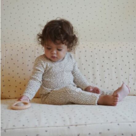 オーガニックコットン100%の柔らかな肌触りのワンジーロンパース。